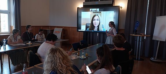 The project team from the Ukrainian KROK University, Galina Bogachenko and Andrii Lotariev, presented the Erasmus project INTERADIS, which is being implemented by eight Ukrainian universities together with European partners, including the OTH Amberg-Weiden, despite numerous challenges. Report