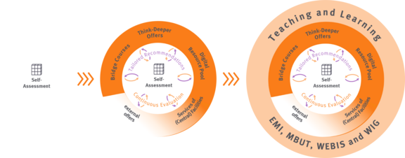 Evidence-based approaches and scientifically sound evaluation of the efficacy of the various offers allows us to create sustainable, attractive and needs-based framing conditions for succesessful teaching and learning processes and support a continous skill development of students and teachers at the same time.