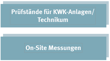 - Im Technikum stehen 4 Prüfstände für Blockheizkraftwerke mit einer elektrischen Leistung bis 25 kW und 2 Prüfstände für Blockheizkraftwerke mit einer elektrischen Leistung bis 600 kW zur Verfügung