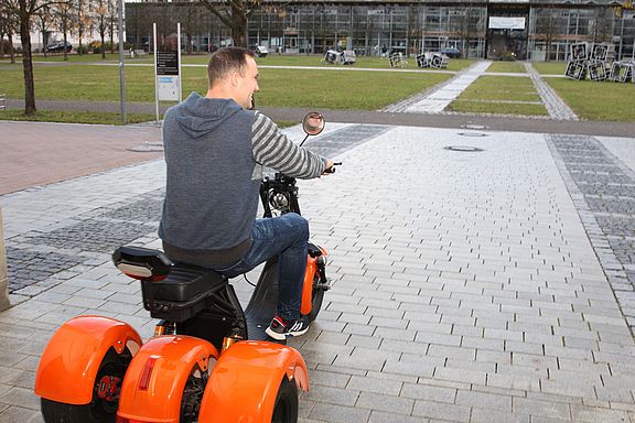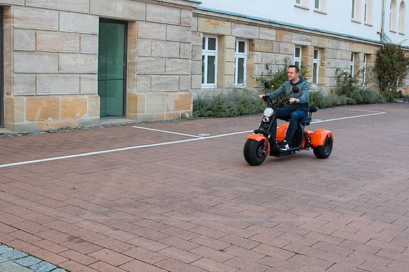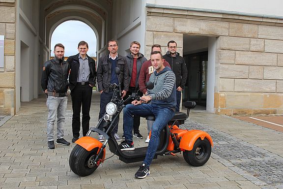 Studierende des Studiengangs Elektro- und Informationstechnik der OTH Amberg Weiden modifizierten im Rahmen ihres studiengangspezifischen Projekts ein Elektrofahrzeug modifiziert. Die Funktionalität des von Metz Automotive bereitgestellten E-Trike wurde in mehrerlei Hinsicht erweitert: