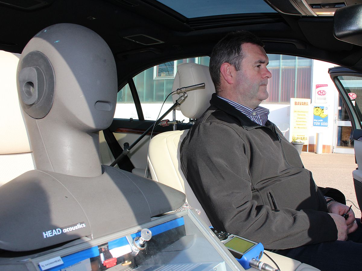 Frontend von HeadAcoustics SQobold (4-kanaliges System) mit BHS II (Mobiles Headset für gehörrichtige Geräuschaufnahmen)