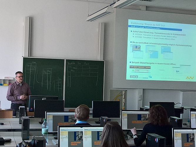 Zur Vermittlung der Inhalte wird der seminaristische Unterricht mit gezielten Übungen an den SAP-Systemen ergänzt. Die Kompetenzkontrolle erfolgt durch eine schriftliche Prüfung.