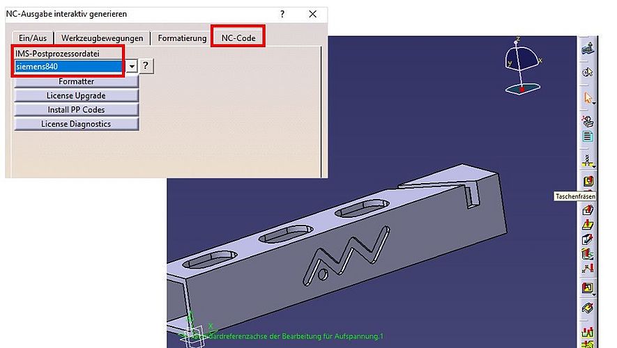* Datenaustausch zwischen CAx- und CNC-Systemen (Beispiel: Transfer von NC-Programmen aus Catia an Dreh-/Fräsbearbeitungszentrum)