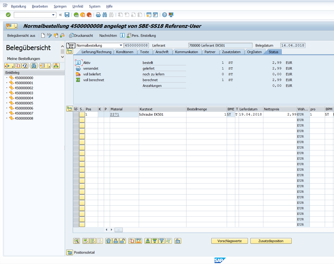 * Anlegen von Bestellanforderung (BANF) und Bestellung