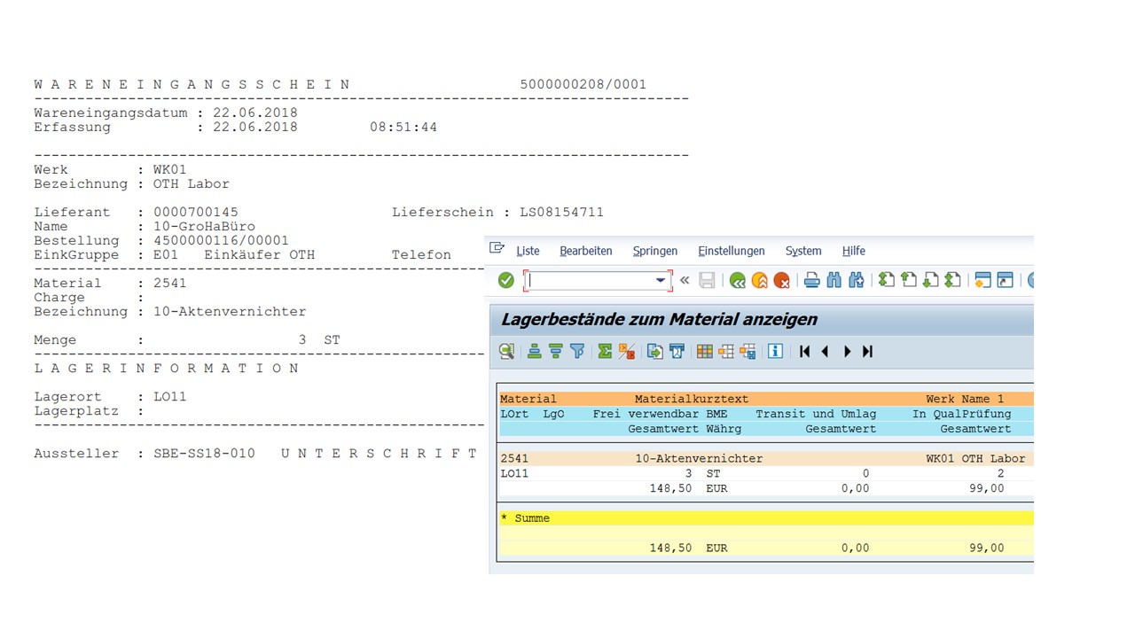 * Anlegen von Stammdaten (Materialstamm, Lieferantenstamm, Einkaufsinfosatz)