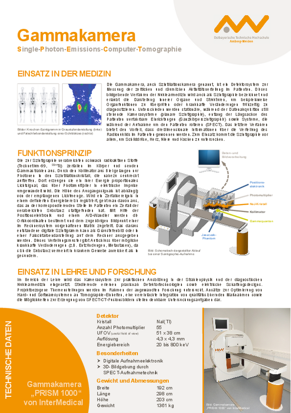 Zum Ausbau der nuklearmedizinischen Forschung und personalisierte Medizin wurde in das Gammakamera-System „Prism 1000“ des Hersteller Intermedical investiert. Das Kamerasystem wird an der OTH Amberg-Weiden unter anderem für den Bereich der Lehre und Ausbildung im Studiengang Medizintechnik verwendet. Studierende erlernen dabei die Grundlagen der Strahlenphysik und der diagnostischen Nuklearmedizin.