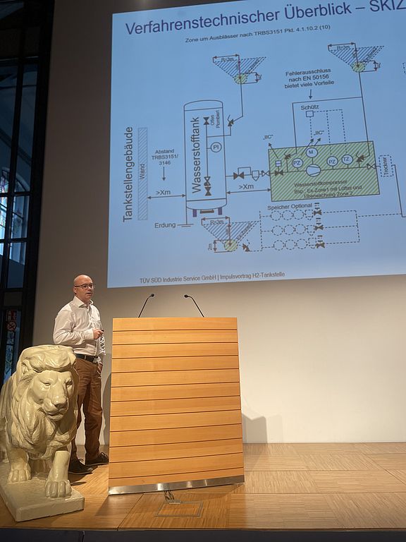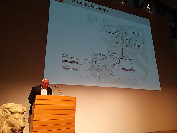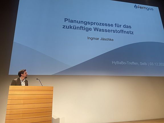 Anschließend erläuterte Stefan Brandner (TÜV SÜD Industrie Service GmbH) die Anforderungen an den Betrieb von Wasserstofftankstellen gemäß BetrSichV und ging dabei besonders auf Sicherheitsstandards und Genehmigungsprozesse ein. Ingmar Jäschke (Ferngas Netzgesellschaft mbH) stellte zentrale Schritte zur Planung des entstehenden deutschen Wasserstoff-Kernnetzes vor, das industrielle Zentren miteinander verbindet und langfristig in europäische Leitungsstrukturen integriert werden soll.