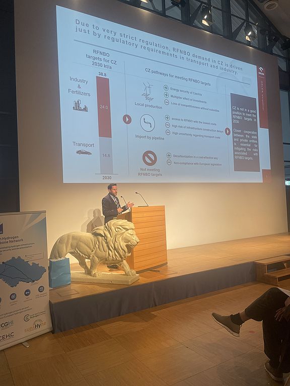 Ein wichtiger Schwerpunkt lag zudem auf den Entwicklungen im Nachbarland Tschechien. Ivo Komorous (NET4GAS, s.r.o.) präsentierte unter dem Titel „Czech Hydrogen Backbone“ den aktuellen Stand und die geplante Ausrichtung des tschechischen Wasserstoff-Kernnetzes. Er zeigte auf, wie zentrale Industriestandorte künftig über neue Leitungsinfrastrukturen angebunden werden sollen und welche Schritte dazu in den kommenden Jahren vorgesehen sind. Ergänzend erläuterte Martin Růžička (ORLEN Unipetrol) in seinem Vortrag „Opportunities and limitations of RFNBO Hydrogen production and utilization in the Czech Republic“ die Potenziale und Grenzen der Erzeugung und Nutzung von RFNBO-Wasserstoff in Tschechien. Beide Beiträge verdeutlichten, dass regulatorische Rahmenbedingungen, Investitionssicherheit und die grenzüberschreitende Abstimmung entscheidende Faktoren für den erfolgreichen Aufbau einer integrierten Wasserstoffinfrastruktur in der Region sind.