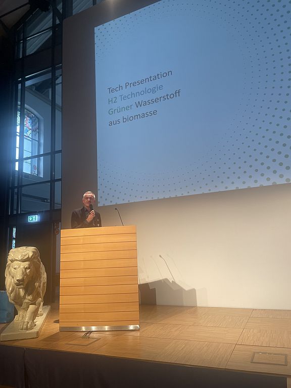 Mit der Frage, wie Unternehmen sich technisch und organisatorisch auf den Einsatz von Wasserstoff vorbereiten können, beschäftigte sich Manfred Bernhard (Max Streicher GmbH & Co. KG). Im Anschluss lieferte Markus Rösch von der HiTES Holding GmbH einen spannenden Beitrag zur Wasserstoffproduktion aus Biomasse, die auf das langfristige Potenzial dieser Technologie hinwies.
