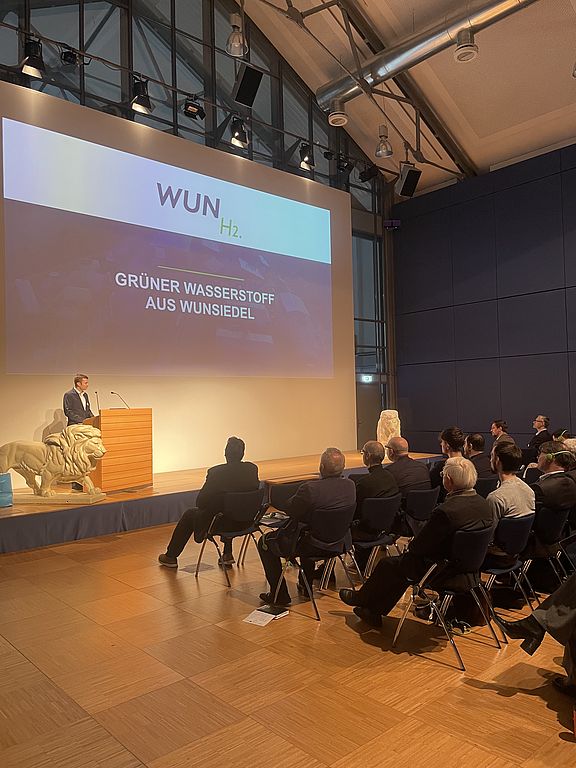 Den Auftakt übernahm Dr. Stefan Bayer (Hochschule Hof), der in seinen Begrüßungsworten auf die Bedeutung regionaler Kooperationen für eine nachhaltige Energiezukunft einging. Im weiteren Verlauf stellte Benjamin Fojer (Rießner-Gase GmbH) das Wunsiedler Projekt zur Produktion von grünem Wasserstoff vor – eine Elektrolyseanlage mit 8,75 MW Leistung, die jährlich rund 1.350 Tonnen grünen Wasserstoff bereitstellt und ein konkretes Beispiel für regionale Wertschöpfung liefert.
