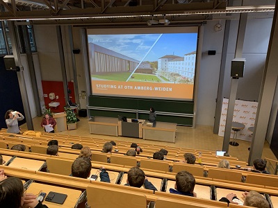 Dabei stand zunächst ein Besuch des Zweckverbands Müllverwertung Schwandorf als praktisches Beispiel der Energieerzeugung auf dem Programm. Stefan Karl illustrierte, wie Abfälle dafür genutzt werden, Strom für das öffentliche Netz zu erzeugen, Wärme für die städtische Fernwärmeversorgung zu liefern und die benachbarte Industrie mit Strom und Dampf zu versorgen. Danach ging es weiter nach Amberg an die OTH Amberg-Weiden, wo Sophia Brandt vom Studien- und Career Service der OTH über die Studienmöglichkeiten in Amberg informierte. Sie stellte das deutsche Hochschulsystem und die Studienangebote der OTH vor, insbesondere die Möglichkeiten für internationale Studierende und die zahlreichen regionalen und interanationalen Kooperationen der Hochschule. Rudolf Höß vom Kompetenzzentrum für Kraft-Wärme-Kopplung (KoKWK) der OTH Amberg-Weiden führte die Schülerinnen und Schüler durch das Technikum des KoKWKs und gab einen Einblick in die praktische Forschung im Bereich der Kraft-Wärme-Kopplung. Abschließend erklärte Anna Lena Reinhardt, Projektkoordinatorin von HyBaBo, die Chancen und Eigenschaften von Wasserstoff und präsentierte die Wasserstoffregion Bayern – Böhmen. Den Schülerinnen und Schüler des Gymnasiums Sokolov, der weiterführenden Mittelschule Sokolov (Integrovaná střední škola technická a ekonomická Sokolov, p. o.) und des Bezirksbildungszentrums Sokolov (Krajské vzdělávací centrum, p. o.) konnten somit verschiedende Praxisbeispiele aus dem Bereich der Energietechnik, Studienmöglichkeiten sowie der Forschungszusammenarbeit gezeigt werden.