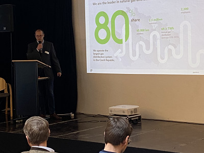Nach der Kaffeepause zeigte Prof. Dr. Raphael Lechner von der OTH Amberg-Weiden die Potenziale grüner Gase für die kommunale Wärmeplanung auf. Eine Einbindung dieser sei möglich, wenn Industrieverfahren Hochtemperatur-Prozesse erfordern, lokale Erzeugungspotenziale genutzt werden können und Umstellungspläne der Verteilnetzbetreiber vorliegen. Daran anknüpfend stellte Dr.-Ing. Andy Gradel von der BtX energy GmbH innovative Verfahren zur Herstellung von Wasserstoff aus Biomasse und Biogas vor und beurteilte verschiedene Technologien wissenschaftlich und wirtschaftlich. Darüber hinaus ordnete er rechtliche Rahmenbedingungen, die Zertifizierung von Biowasserstoff und den Weg zum Wasserstoffhochlauf ein. Max Zintl von der Green Energy Max Zintl GmbH sprach über die Nutzung von Biomethan als Brückentechnologie auf dem Weg zu einer vollständig auf Wasserstoff basierenden Energieversorgung. Er veranschaulichte den praktischen Weg einer Biogasanlage und brachte dabei seine jahrzehntelange Erfahrung in der Biogasanlagenberatung ein. Eilhard Stohldreier von der Siqens GmbH präsentierte die EHS-Technologie als innovativen Ansatz zur Effizienzsteigerung in der Wasserstoffwertschöpfungskette Abschließend berichtete Jan Červenka von GasNet über ein Pilotprojekt zur Einspeisung von Wasserstoff in das Erdgasnetz im tschechischen Hranice. Dabei erfolgt Elektrolyse aus Solar- und Windstrom.