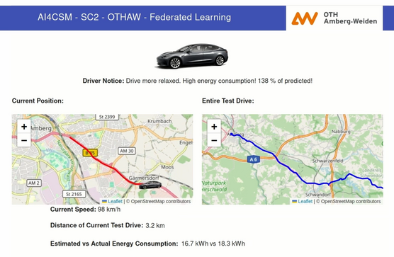 Das Automotive-Team unter Leitung von Prof. Dr.-Ing. Alfred Höß (Fakultät EMI) präsentierte bei der Langen Nacht der Wissenschaften in Nürnberg seinen Modellansatz zur Reichweitenschätzung für Elektrofahrzeuge (AI4CSM). Dazu wurde ein Prototyp für einen digitalen Begleiter entwickelt, der aktiv zu energiesparendem Fahrverhalten anregt. Die Arbeit umfasste die Problemquantifizierung und die Definition eines Baseline-Klassifikators. Darauf aufbauend entstand ein Machine-Learning-Konzept, das Datenschutz durch Datenminimalismus und Erklärbarkeit (EU AI-Act) anwendungsnah für Hersteller und Fahrer umsetzt. „Grünes KI-Training“ mittels Federated Learning ermöglicht ressourcenschonendes Training über ganze Fahrzeugflotten und reduziert zugleich die Bandbreitennutzung im Funkspektrum. Das System ist schrittweise zu einem komplexen Klassifikationsbaum erweiterbar.