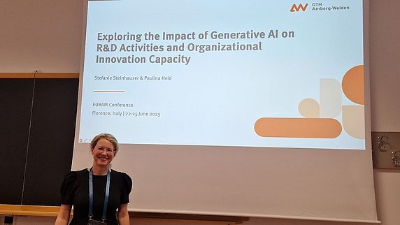 Prof. Dr. Dr. Stefanie Steinhauser (Fakultät WIG) präsentierte ihre Forschungsergebnisse zu Generativer KI und großen Sprachmodellen auf zwei internationalen Top-Konferenzen: der EURAM (European Academy of Management) in Florenz und der AOM (Academy of Management) in Kopenhagen.