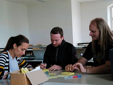 Beim ersten Arduboy-Hackathon wurden die Studierenden von den Medieninformatik-Dozenten Prof. Martin Frey und Prof. Dr. Ulrich Schäfer sowie Laboringenieur Benjamin Michallok unterstützt. Durch eine Kooperation mit Prof. Dr. Peter Stöhr von der Hochschule Hof konnten für alle TeilnehmerInnen eigene Arduboys zur Verfügung gestellt werden. Das Ergebnis des Hackathons waren drei lauffähige Spiele: Snake-, Breakout-Varianten sowie Montagsmaler, die alle von Null auf am selben Tag entstanden sind.