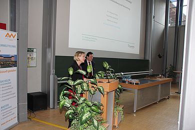 In der Mittagspause hatten die Teilnehmer die Möglichkeit, sich über die an der OTH angebotenen Studiengänge Patentingenieurwesen und Medizintechnik zu informieren. Zudem bot der Dekan der Fakultät MB/UT, Prof. Jochen Hummich, einen Einblick in das Labor Kunststofftechnik und Prof. Dr. Ursula Versch öffnete das Recherchelabor und beantwortete den interessierten Besuchern Fragen zum Thema Recherche im Studiengang Patentingenieurwesen.