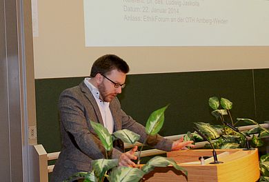 Über „Technik, Wirtschaft und mehr! Bildung an einer Technischen Hochschule“ diskutierte das 12. EthikForum der OTH Amberg-Weiden. Den thematischen Anlass hierzu bot die Ernennung zur Ostbayerischen Technischen Hochschule Amberg-Weiden. Unter Moderation von Prof. Christiane Hellbach begann Dr. Ludwig Jaskolla (Hochschule für Philosophie in München) mit seinem Statement, indem er die Bedeutung von „Learning Cycles“ für das umfassende Verstehen von Problemstellungen vorstellte. In solch interdisziplinären Lernkonzepten stünden nicht nur technische oder wirtschaftliche Lösungen im Vordergrund.
