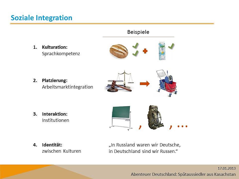 In ihrem Vortrag "Abenteuer Deutschland" gab Ksenija Gatskova vom Institut für Ost- und Südosteuropaforschung (IOS) einen Einblick auf die Migration von Spätaussiedlern aus Kasachstan in Deutschland. Basierend auf empirischen Untersuchungen und der darauf folgenden Diskussion mit dem Publikum gelang es, Ksenija Gatskova die Realität der Integration von Russlanddeutschen näher zu bringen.