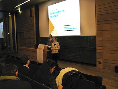 In ihrem Vortrag "Abenteuer Deutschland" gab Ksenija Gatskova vom Institut für Ost- und Südosteuropaforschung (IOS) einen Einblick auf die Migration von Spätaussiedlern aus Kasachstan in Deutschland. Basierend auf empirischen Untersuchungen und der darauf folgenden Diskussion mit dem Publikum gelang es, Ksenija Gatskova die Realität der Integration von Russlanddeutschen näher zu bringen.