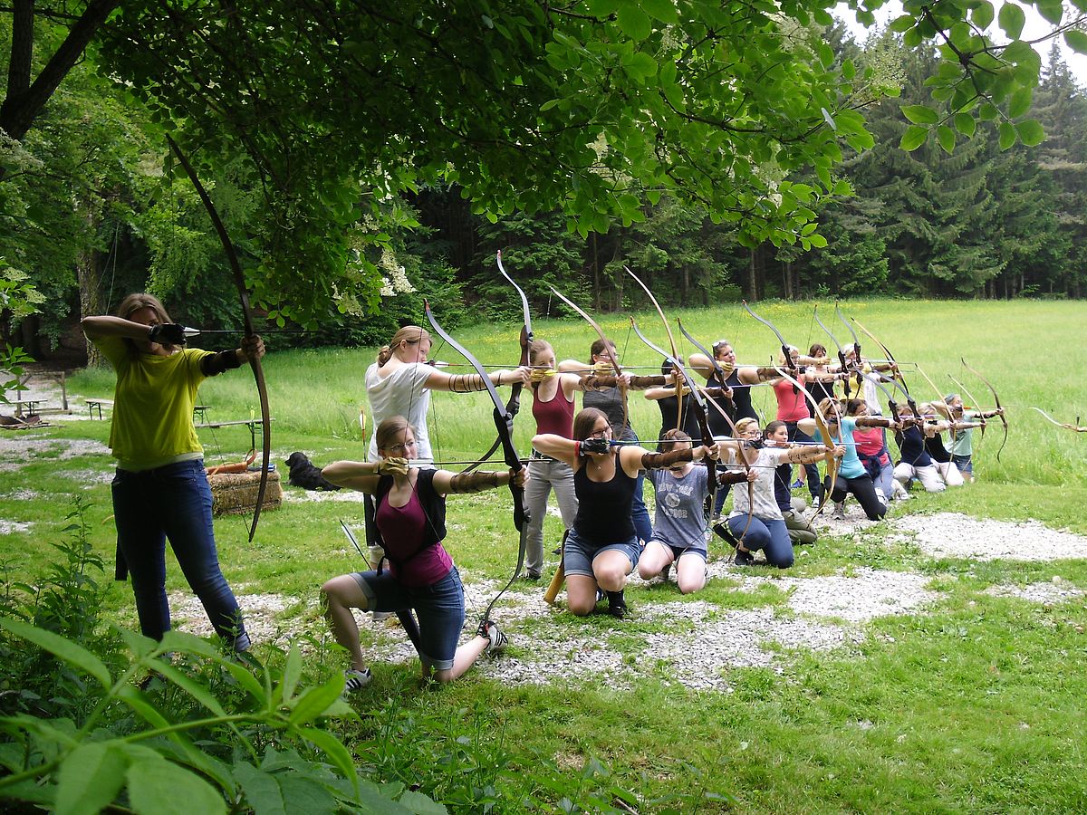 Hier wurden die Mentorinnen und Mentees von den Erlebnispädagogen Willi Mühlbauer und Jan Kreissel empfangen. In einem ersten Schritt erfolgte die Einweisung ins Equipment, um anschließend in die Grundlagen des traditionellen Bogenschießens eingewiesen zu werden. Im Vergleich zum technischen Bogenschießen liegt die Aufmerksamkeit hier hauptsächlich auf dem Menschen und dient der Selbstwahrnehmung und somit der Persönlichkeitsentwicklung. In mehreren nacheinander zunächst ganz bewusst durchgeführten Schritten des richtigen Anlegens von Pfeil und Bogen bis hin zum Abschuss wurden die jungen Frauen immer selbstsicherer und trafen bereits nach kurzer Zeit die Zielscheiben aus der intuitiven Durchführung heraus. Das Bogenschießen ist somit ideal, um Konzentration und Körperbeherrschung im Einklang zu erleben. Aber auch das Vertrauen auf die eigenen Fähigkeiten wird dabei gestärkt. Diese Erkenntnisse können auch im Studium und Beruf genutzt werden: Fokussiert auf die nächsten Schritte und vertrauend auf die persönlichen Fähigkeiten in Kombination mit Teamarbeit werden die anvisierten Ziele sicherlich erfolgreich realisiert. Ihr neu erworbenes Talent konnten die Teilnehmerinnen abschließend im 3D-Parcours unter Beweis stellen. Dieser führt in 30 Stationen durch den angrenzenden Wald. Vom Dinosaurier, über Wildschweine, Eichhörnchen, Eulen, einem sich in Fortbewegung befindlichen Luchs, Wiesel und Co. können hier die verschiedensten Gummitiere „erlegt“ werden. Im Gasthaus „Zum Ritter“ in Eckeltshof konnten alle Beteiligten das Erlebte sacken lassen und über die Mentoring-Programme mit ihren Workshops zur „Prüfungsvorbereitung“, der „Führungskompetenz von Frauen“, dem „Stressmanagement“, der „Abenteuer Motivation“ und den vielen Gelegenheiten zum gegenseitigen Austausch reflektieren. Im kommenden Wintersemester 2015/2016 starten die Mentoring-Programme „first steps…“ und „professional steps“ zur neuen Runde. Nähere Informationen hierzu und zu allen anderen Aktivitäten des Zentrums für Gender und Diversity sind auf der Homepage oder direkt beim Zentrum für Gender und Diversity (genderbuero@oth-aw.de und familienbuero@oth-aw.de) erhältlich.