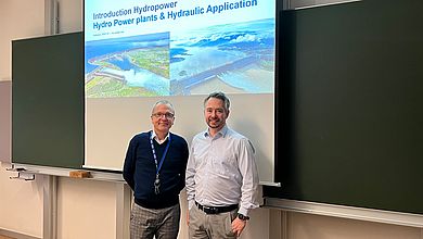 Prof. Weiß zeigte sich stolz auf seinen ehemaligen Diplomanden und betonte die Relevanz des Themas. Der Vortrag, geprägt von Schöners 20-jähriger Praxiserfahrung, begeisterte die Studierenden des IEE-Masterstudiengangs. Sie verfolgten aufmerksam Tobias Schöners Ausführungen und nutzten die Gelegenheit, Fragen zu stellen und ihr Wissen über Wasserkraft zu vertiefen.