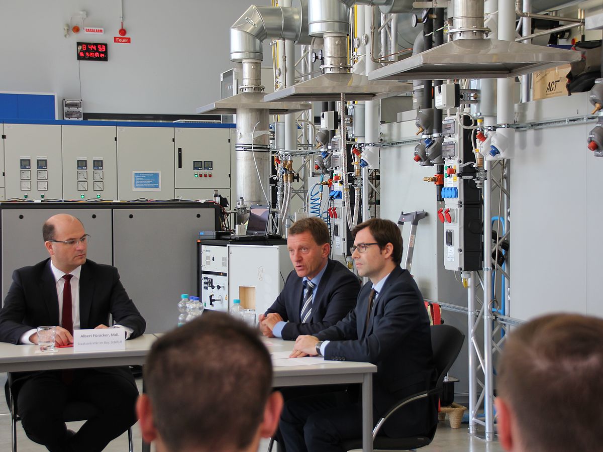 „Die OTH Amberg-Weiden mit dem Kompetenzzentrum Kraft-Wärme-Kopplung ist ein ‚Hotspot’ der Energiewende“, so Staatssekretär Albert Füracker bei seinem Besuch. Prof. Dr. Andrea Klug, Präsidentin der OTH Amberg-Weiden, bedankte sich für die Fördersumme. „Mit dieser Förderung haben wir an der OTH Amberg-Weiden die Grundlage für die Spitzenforschung in der umweltgerechten Energietechnik für die Energiewende in Bayern gelegt.“ Das Kompetenzzentrum mit Prof. Dr.-Ing. Markus Brautsch als wissenschaftlicher Leiter und Dipl-Ing.(FH) M.Sc. Raphael Lechner als Geschäftsführer bündle in bayernweit einmaliger Form die Forschungskompetenzen im Bereich der Kraft-Wärme-Kopplung.