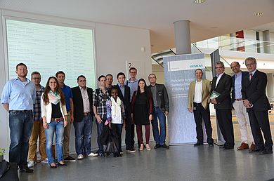 Erst als alle Fragen beantwortet waren, ging das Wort wieder an Hans-Joachim Zange, welcher nun zum letzten Tagesordnungspunkt überleitete – Die Abschlussaufgabe. Er berichtete der Gruppe von einem aktuellen Problems im IT Offshoring, zeigte ihr einen angestrebten Lösungsansatz und forderte sie heraus, die von Siemens erarbeitete Lösungsstrategie selbst zu rekonstruieren. Dies gelang den Studierenden, mit etwas Hilfe seitens der betreuenden Dozenten und Siemensmitarbeiter, erstaunlich gut und zeigte ihnen, wie nahe trockene Theorie und frische Praxis doch beieinander liegen können.