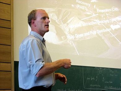 Steven Nothrop, Verfahrensingenieur beim internationalen Papierproduzenten Kimberly & Clark und derzeit PhD-Student an der University of South Australia, erläuterte die Herangehensweise bei der Problemlösung der Algenblüte am Beispiel eines großen Binnengewässers am Standort einer Papiermühle. Nachdem die wiederkehrende Algenblüte auch auf die Eutrophierung durch Wasser aus der Papierproduktion zurückzuführen ist, wurde zunächst das begrenzende Element für den Nährstoffeintrag bestimmt, verbunden mit den Möglichkeiten der Reduktion. Neben den technischen Fragestellungen war im Seminar auch Zeit, den Karriereweg Bachelor, Master und PhD zu besprechen.