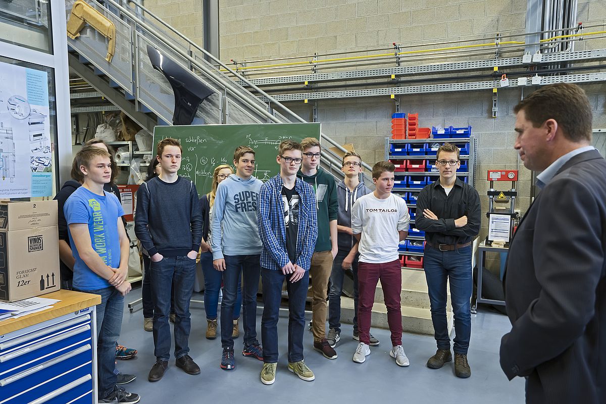 Bevor es aber in die Welt der Kunststofferzeugung und Kunststoffverarbeitung ging, stellten Studierende des Campus-Teams (Sarah Kerling, Lena Großer und Harald Jung) in Kurzvorträgen den SchülerInnnen zunächst einmal die Ostbayerische Technische Hochschule Amberg-Weiden und ausgewählte Studiengänge der Fakultät Maschinenbau/Umwelttechnik vor. So erfuhren die BesucherInnen aus erster Hand, warum sich die Studierenden für ihren Studiengang entschieden haben, was sie in ihrem jeweiligen Fach eigentlich lernen und welches Berufsziel sie dabei verfolgen. Dies sind schließlich die wichtigen Kernfragen, die sich in Kürze auch die angehenden AbiturientInnen bei ihrer Studien- und Berufswegplanung stellen müssen.