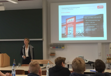 Claudine Klein, Leiterin der Personalentwicklung bei A.T.U, besuchte die Vorlesung, um zwei weitere Projekte in Auftrag zu geben. Zum einen werden die Studierenden ein Projekt mit dem Ziel der Optimierung der Karrierewebseite für die Unternehmensgruppe A.T.U bearbeiten; eine weitere Gruppe Studierender ist damit beauftragt, sich mit der Bindung von Nachwuchs durch Nachwuchsförderung bei A.T.U durch die Konzeption eines Traineeprogramms auseinanderzusetzen.