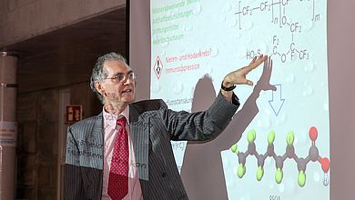 Prof. Dr. Peter Kurzweil lehrt Chemie, Umweltanalytik und Brennstoffzellentechnik an der OTH Amberg-Weiden. Wenn er keine wissenschaftlichen Standardwerke verfasst, widmet er sich besonders gern der angewandten Forschung. Also einer Forschung, die weniger Grundlagenwissen ermittelt, als vielmehr konkrete Probleme von Unternehmen oder des Alltags löst. Zusammen mit Kolleginnen und Kollegen der OTH Regensburg bildet er das Forschungscluster IMCA – Intelligente Mikrostrukturen und Chemische Analyse. Anlässlich des zehnjährigen Bestehens des OTH-Verbundes stellte er diese Arbeit der Öffentlichkeit vor. Es ging um die chemische Analytik von Problemstoffen, also um die Frage, wie man herausfindet, welche Stoffe in einem Gegenstand enthalten sind und ob davon eine gesundheitliche Gefahr ausgeht.