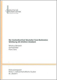 Bei den kleineren Stückelungen erreicht dieser Anteil sogar 80 %. Die deutschen Emissionen haben sich auch wesentlich dynamischer entwickelt als zur D-Mark-Zeit. Den Gründen, die hinter diesen Entwicklungen stehen, gehen die Autoren in der Veröffentlichung „Der Auslandsumlauf deutscher Euro-Banknoten“ nach (Diskussionspapier der Deutschen Bundesbank, Reihe 1: Volkswirtschaftliche Studien, Nr. 20/2011 und Nr. 21/2011), erschienen in deutscher und englischer Sprache. Die Wissenschaftler finden heraus, dass von den deutschen Euro-Emissionen nur rund 10 % für Käufe in Deutschland verwendet werden. Der Rest wird aus unterschiedlichen Gründen in Deutschland „gehortet“ (20 %), läuft in anderen Ländern des Euro-Währungsgebiets um (25 %) oder befindet sich außerhalb des Euro-Raums (45 %). Dies ist bei geldpolitischen Analysen und Entscheidungen zu berücksichtigen.