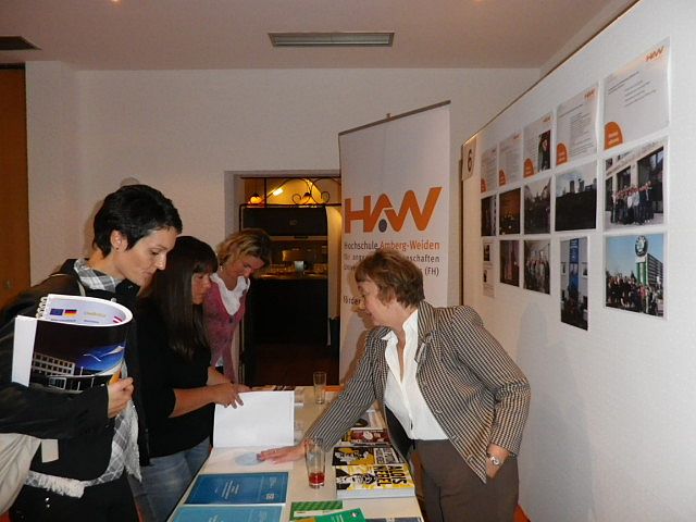 „Tschechisch-Kompetenz als Sprungbrett für die Karriere“ – so lautete auch das Motto des Informationsstands der Hochschule Amberg-Weiden beim „Markt der Möglichkeiten“ im Anschluss an die Vorträge von Staatssekretär MdL Bernd Sibler und IHK-Präsident Peter Esser. AOR PaedDr. Ladislava Holubová und M.A. Marian Mure vom Sprachen- und Mittel-Osteuropazentrum präsentierten dem interessierten Publikum das weite Spektrum der Tschechisch-Kooperationen und Kontakte der Hochschule Amberg-Weiden. Dr. Holubová stellte dabei auch ihre neueste Publikation, das Arbeitsheft „Tschechisch Lernen“, vor.