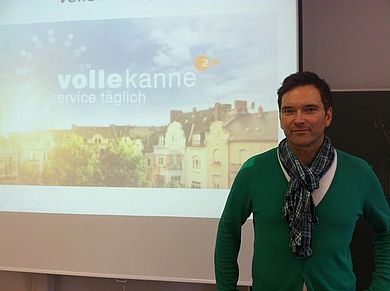 Ingo Nommsen, Moderator, Sprecher und Schauspieler, folgte der Einladung von Prof. Maximilian Kock (Studiengang Medienproduktion und Medientechnik), um einen Einblick in seine Arbeit als Moderator bei Sendungen wie „Volle Kanne“ und „ZDF-Fernsehgarten“ zu geben. In seinem sehr gut besuchten Vortrag öffnete Ingo Nommsen den Zuhörern die Tür zur Welt des Fernsehens aus der Sicht eines Moderators: Für die Redaktionen der TV-Sender hat das Internet mit seinem großen Angebot von Mediatheken und von populären Social-Media-Plattformen wie Facebook und Twitter gerade bei der Zielgruppe 14 bis 29 Jahre eine immer größere Relevanz.