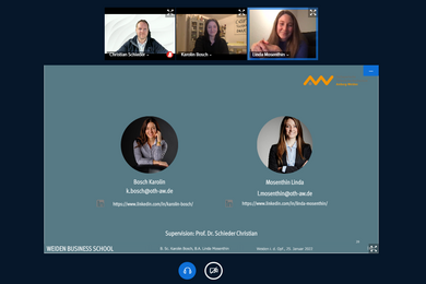 Prof. Dr. Christian Schieder richtete sich bei der Begrüßung auch direkt an die internationalen Studierenden, bevor er die Referentinnen Karolin Bosch und Linda Mosenthin vorstellte. Beide stehen kurz vor Abschluss des Masterstudiengangs Digital Business, die Forschungsarbeit erstellten sie im Modul „Digital Business Research“.