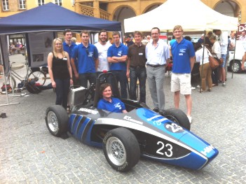Das Ecar-Team der HAW hat beim ersten Treffen der oberpfälzer Elektromobilfahrer den Elektrorenner der Hochschule vorgestellt. Der Elektrobolide wurde am verkaufsoffenen Sonntag (29. April 2012) vor dem Amberger Rathaus erstmals präsentiert. Der unter Schirmherrschaft von Oberbürgermeister Wolfgang Dandorfer entwickelte Prototyp eines Elektrorennwagens konnte einschließlich von Sitzproben bestaunt werden.