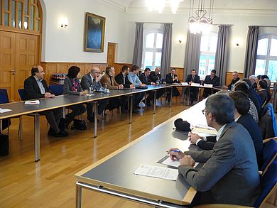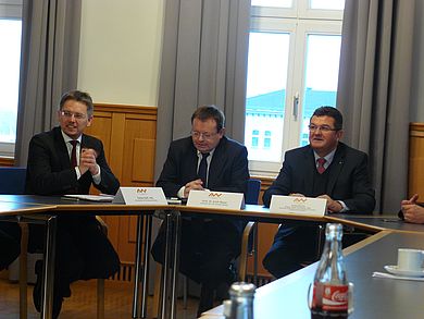 Zu einem energiepolitischen Gespräch an der OTH in Amberg traf sich der CSU-Arbeitskreis Energiewende im Bezirksverband Oberpfalz mit Staatssekretär MdL Franz Josef Pschierer, Bayerisches Staatsministerium für Wirtschaft und Medien, Energie und Technologie, und MdL Tobias Reiß (Tirschenreuth). Nach einer Begrüßung der Gäste im Senatssaal der Hochschule durch Präsident Prof. Dr. Erich Bauer und eine Vorstellung des aktuellen Sachstandes der Energiewende in Bayern durch Herrn Staatssekretär Pschierer präsentierte Prof. Dr.-Ing. Markus Brautsch, Fakultät Maschinenbau / Umwelttechnik und Leiter des Instituts für Energietechnik (IfE) an der OTH Amberg-Weiden, die Kompetenzen und anwendungsorientierten Projekte im Bereich der Kraft-Wärme-Kopplung.