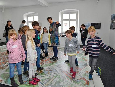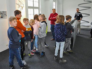 Nachdem sich alle in der Mensa gestärkt hatten ging es zum Nachmittagsprogramm, zunächst in das Luftmuseum Amberg. Hier gibt es viele originelle und lustige Dinge rund um das Thema „Luft“ zu erleben. Dabei konnten die Kinder nicht nur viele Exponate ansehen, sondern bekamen sie auch erklärt. Nach dem luftigen Erleben im Luftmuseum, ging es weiter zum luftigen Spaß beim Spielen im Stadtwerke-Saal.