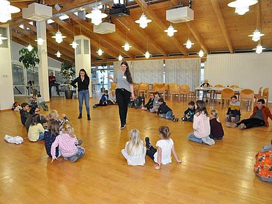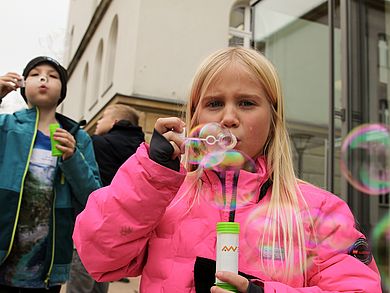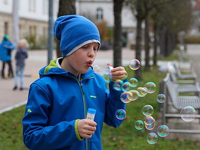 Vor dem Mittagessen konnten sich die Kinder sich Bewegung verschaffen und ausgelassen Seifenblasen in die Luft schicken.