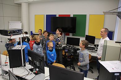 Vormittags besuchten die Kinder die OTH in Amberg. Experimente im Medienlabor und eine Kindervorlesung zum Thema „Licht“ vermittelten den Kindern zwischen sechs und 13 Jahren (Fach-)Wissen. Im Anschluss bastelten sie ein Spektroskop, mit dem sie das Licht untersuchen konnten.