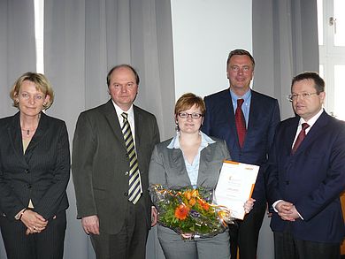 Frau Nina Heldmann erhielt als erste Preisträgerin die HAW-Auszeichnung „Engagiert. Für Studierende!“ aus den Händen von Präsident Prof. Dr. Erich Bauer und Dipl.-Kfm. Christian Engel (Vorsitzender des Hochschulrates, Sprecher der Geschäftsführung der BHS Corrugated GmbH, Weiherhammer) im Rahmen der Sitzung des Hochschulrates am 19. März 2012.