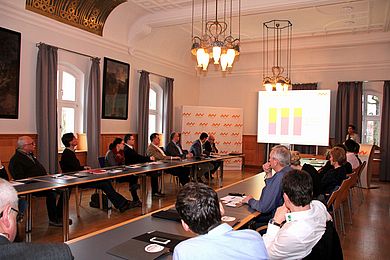 Da der Erfahrungsaustausch immer und in erster Linie dem Gespräch untereinander und Kennenlernen der Akteure auf Unternehmens- und auf Hochschulseite dient, hatten die Vertreter/innen der Unternehmen und der Hochschule im Anschluss an den Vortrag ausführlich Gelegenheit, sich in Gesprächen zu begegnen.