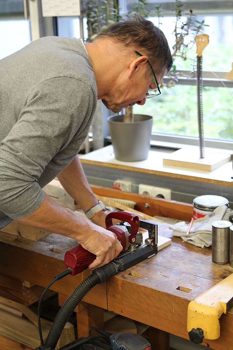 Die acht Teilnehmenden, die einen Platz ergattern konnten, bauten aus Holzabfällen, die an der Hochschule anfallen mit Unterstützung des Bildhauers Christian Hiller und unserem Werkmeister Gerald Weigl Neues: Insektenhotels, Vogelhäuser, Hocker, Hochbeete, Kerzenständer, sogar ein Kratzbaum und eine Wandgarderobe sind dabei entstanden.