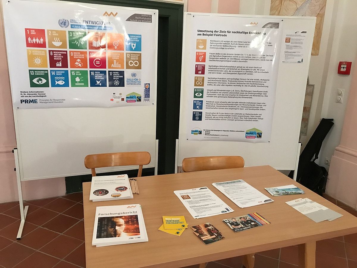 Das Institut für Nachhaltigkeit der OTH Amberg-Weiden informierte die Besucherinnen und Besucher an einem Informationsstand. Am Beispiel der FairTrade Initiative stellte es die 17 Ziele nachhaltiger Entwicklung der Vereinten Nationen vor und informierte über die zahlreichen Aktivitäten der Hochschule in diesem Bereich. So setzt sich die OTH Amberg-Weiden für eine nachhaltige Entwicklung ein und ist u.a. die 10. FairTrade University Bayerns.
