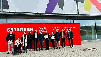 Auf dem Campus der Westböhmischen Universität in Pilsen begrüßte anschließend Romana Suchá vom International Office die Gruppe und führte die Teilnehmenden vorbei an den wichtigsten Fakultätsgebäuden und Forschungszentren zur "Sutnarka". Das Gebäude der Fakultät für Kunst und Design begeisterte die Studierenden nicht nur durch das farbenfrohe Äußere, sondern vor allem durch die vielen Werkstätten für alle erdenklichen künstlerischen Richtungen. Die hier ausgerichtete Sommerschule ArtCamp zieht jährlich junge Menschen aus der ganzen Welt an.