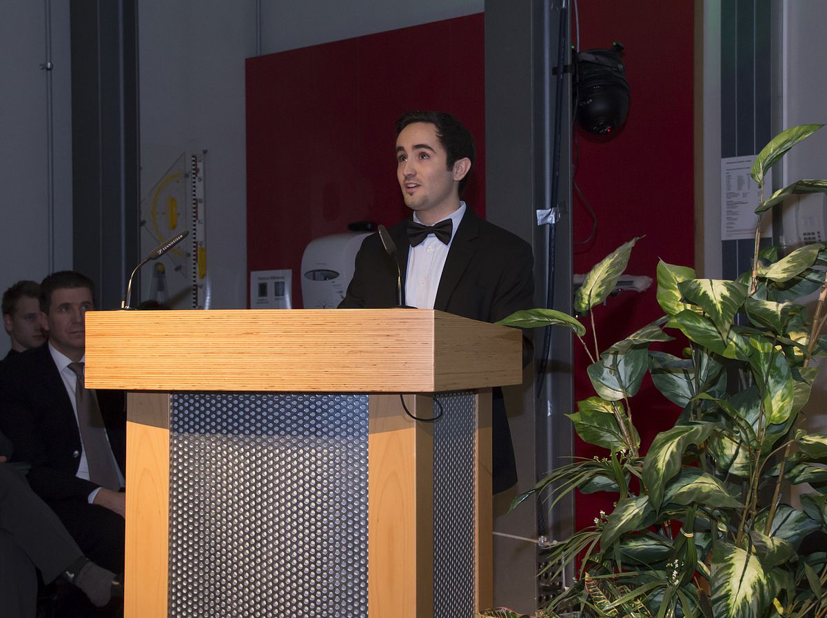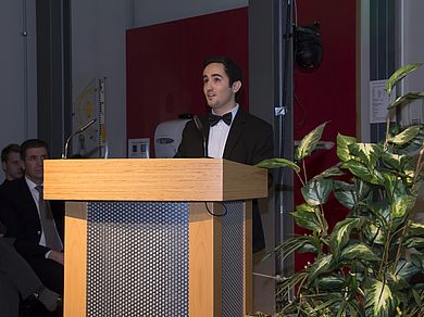 Der Dekan der Fakultät Maschinenbau/Umwelttechnik, Prof. Dr. Stefan Beer, hieß die „Ehemaligen“ und Gäste herzlich willkommen. Im Anschluss ließ der frischgebackene Bachelor of Engineering, Benjamin Keilhack (Studiengang Erneuerbare Energien), stellvertretend für alle Absolventinnen und Absolventen, seine Studienzeit an der HAW nochmals Revue passieren. Den Weg zum Bachelorzeugnis verglich er anschaulich mit einer steinigen Bergwanderung – mit Licht und Schatten, auf der man immer mal wieder Zweifel bekommt, ob das Gipfelkreuz, also der bestandene Abschluss, überhaupt erreichbar ist. Motiviert hat ihn an dieser Stelle unter anderem ein Zitat des Philosophen Immanuel Kant, welches er im Büro eines Professors entdeckte: „Ich kann, weil ich will, was ich muss“.