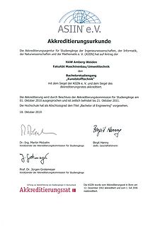 Der Antrag der Fakultät Maschinenbau/Umwelttechnik auf Akkreditierung der genannten Studiengänge wurde damit von der Akkreditierungskommission für Studiengänge der ASIIN e. V. positiv beschieden. Federführend engagiert bei der Vorbereitung und Durchführung des Verfahrens in der Fakultät Maschinenbau/Umwelttechnik war Prof. Dr. Peter Kurzweil als Akkreditierungsbeauftragter, in enger Abstimmung mit Vizepräsidentin Prof. Dr. Andrea Klug, Dekan Prof. Dr. Franz Bischof sowie den Kolleginnen und Kollegen in der Fakultät sowie in der Hochschulverwaltung.