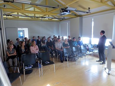 Studierende der Studiengänge Wirtschaftsingenieurwesen sowie Internationales Technologiemanagement haben im Rahmen der Veranstaltung "Finanz- und Investitionswirtschaft" die Volksbank Nordoberpfalz eG in Weiden, ein Innovativer LernOrt (ILO) der Hochschule, besucht. Die Exkursion fand am 22. Juni auf Initiative von Prof. Dr. Frank Schäfer statt.