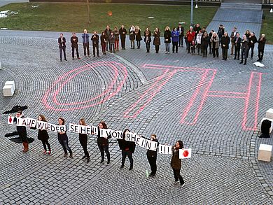 Wenn verdiente Professorinnen und Professoren in den Ruhestand gehen, werden sie zuweilen mit Abschiedsvorlesungen, Festvorträgen oder Festkolloquien geehrt. Ein absolutes Novum in der deutschen Hochschullandschaft dürfte dagegen die Abschiedschoreographie sein: Das Tanzstück haben Mitarbeiterinnen der Fakultät Betriebswirtschaft ersonnen und vorbereitet. Gemeinsam mit Kolleginnen, Kollegen, Studierenden und Gästen der OTH Amberg-Weiden führten sie es gestern am Weidener Campus auf – zu Ehren von Prof. Dr. Wolfram von Rhein, der im März in den Ruhestand wechselt.