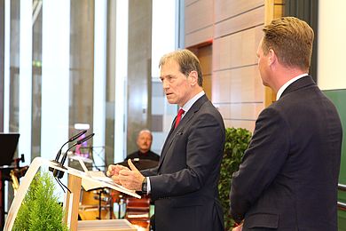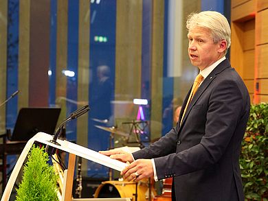 „Sie können auf jahrelange Erfahrung in der freien Wirtschaft sowie in Forschung und Lehre zurückgreifen. Als Leiter des Instituts für Medizintechnik an der OTH haben Sie sich in der Region und über diese hinaus bereits einen Namen gemacht. Sie sind das Gesicht des zukunftsweisenden Gesundheits- und Medizintechnik-Campus Oberpfalz in Weiden geworden“, sagte Wissenschaftsminister Bernd Sibler in seinem Grußwort. Damit habe Bulitta in einem wichtigen Teilbereich schon seit Jahren an entscheidenden Weichenstellungen für die Zukunft der Hochschule mitgewirkt. „Ich bin mir sicher, dass Sie als Präsident auf die Erfolge Ihrer Vorgängerin Prof. Dr. Andrea Klug beim Ausbau der Hochschule aufbauen werden und bin gespannt, welche neuen Impulse Sie künftig für die gesamte OTH Amberg-Weiden setzen werden.“ Sibler betonte, er freue sich auf die Zusammenarbeit, „denn wir wollen und müssen Zukunft gestalten, sie wartet nicht auf uns.“